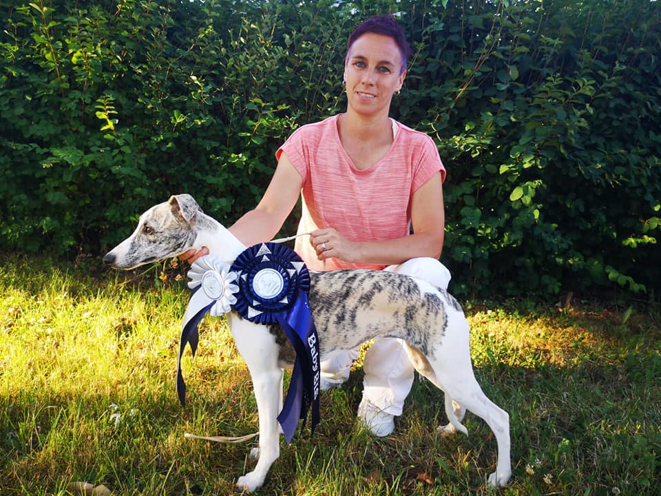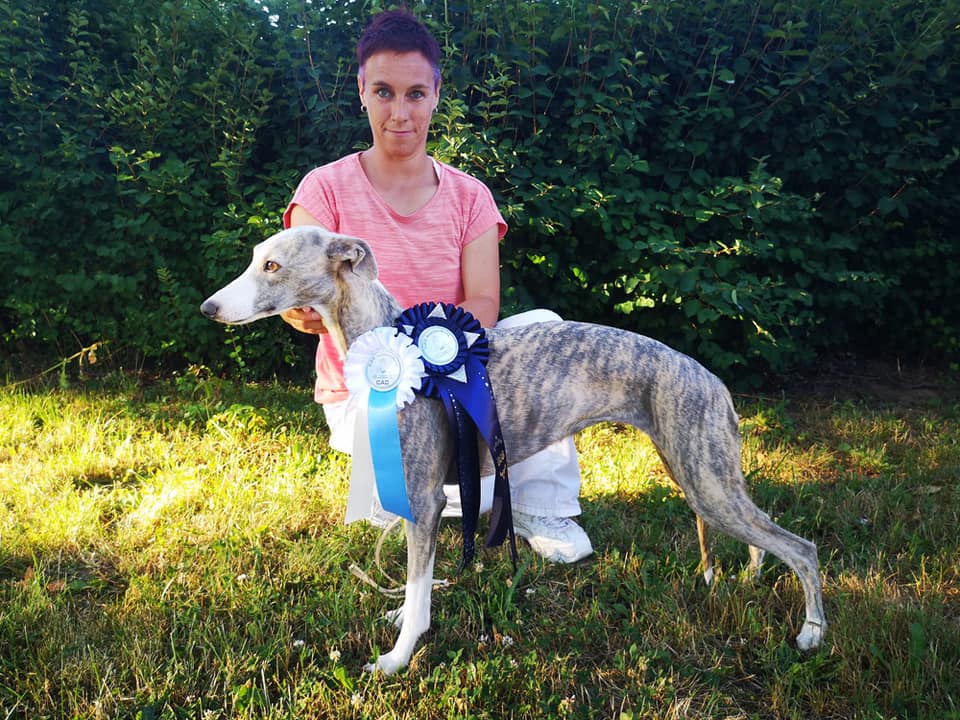 Heute war ein sehr erfolgreicher Tag für unseren Kennel Silken Diamonds. Mit unserer Silken Diamonds Anouk the one and only, "Anouk" und unserer Jüngsten, Silken Diamonds Bella be my Baby, "Kiana", ging es nach Darmstadt zur CAC Ausstellung des Darmstädter Club der Windhundfreunde e. V.. Anouk konnte sich in ihrer Klasse behaupten, gewann Platz 1 und bekam somit das CAC (Championanwartschaft) zugesprochen. Im weiteren Verlauf der Ausstellung wurde sie auch die beste Hündin der Whippetklassen, und gewann danach gegen den besten Rüden das BOB (Best of Breed). Unsere erst 5 Monate alte Kiana startete heute zum ersten Mal überhaupt in einer Ausstellung, machte ihre Sache super und mit sichtlich viel Spass daran. Belohnt wurde sie dafür mit dem BABY BOB in der Babyklasse. Im weiteren Verlauf gewann sie das BABY BIS (Best in Show) und wurde somit bestes Baby der ganzen Ausstellung. Wir sind natürlich super stolz auf unsre beiden.