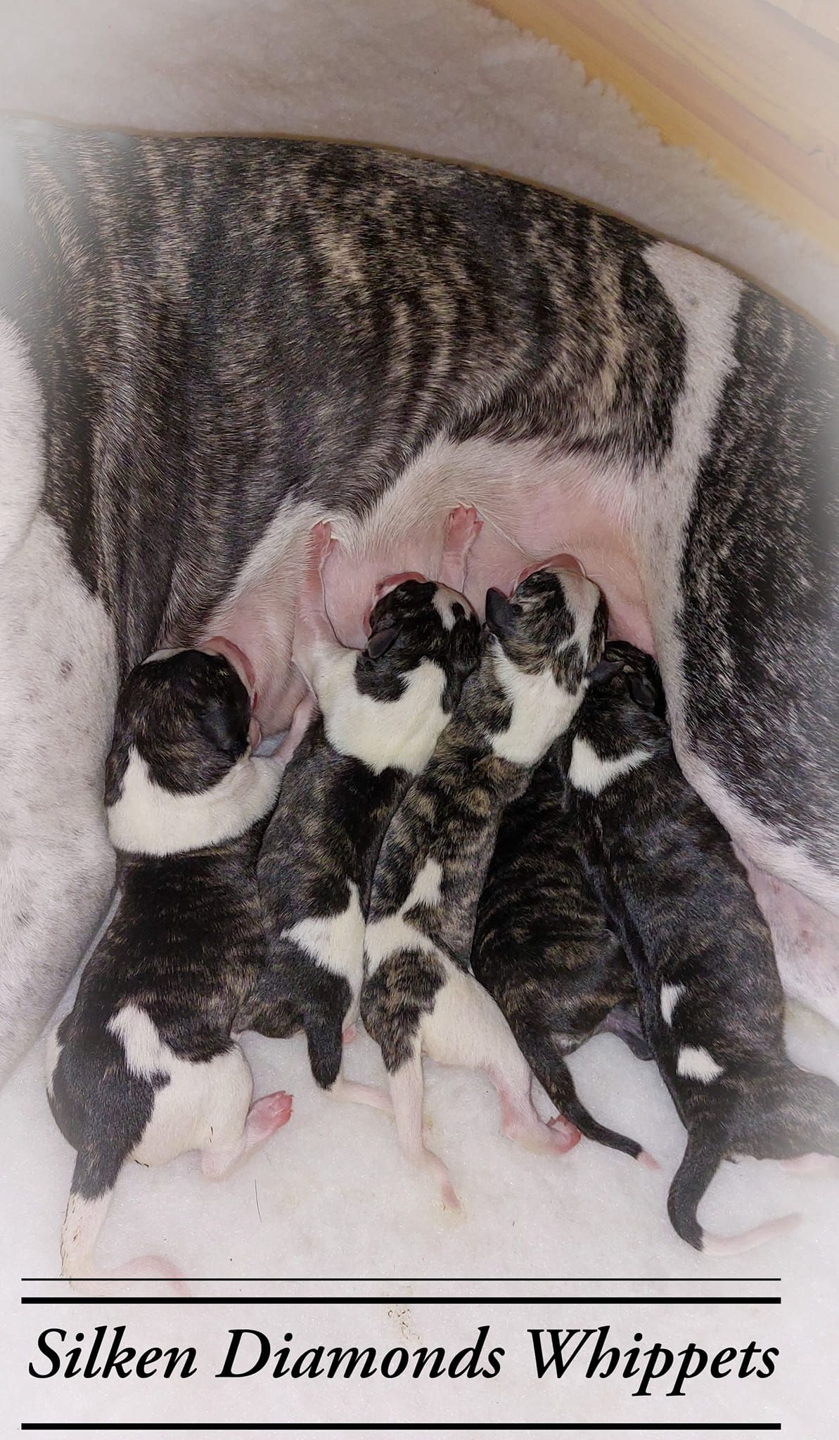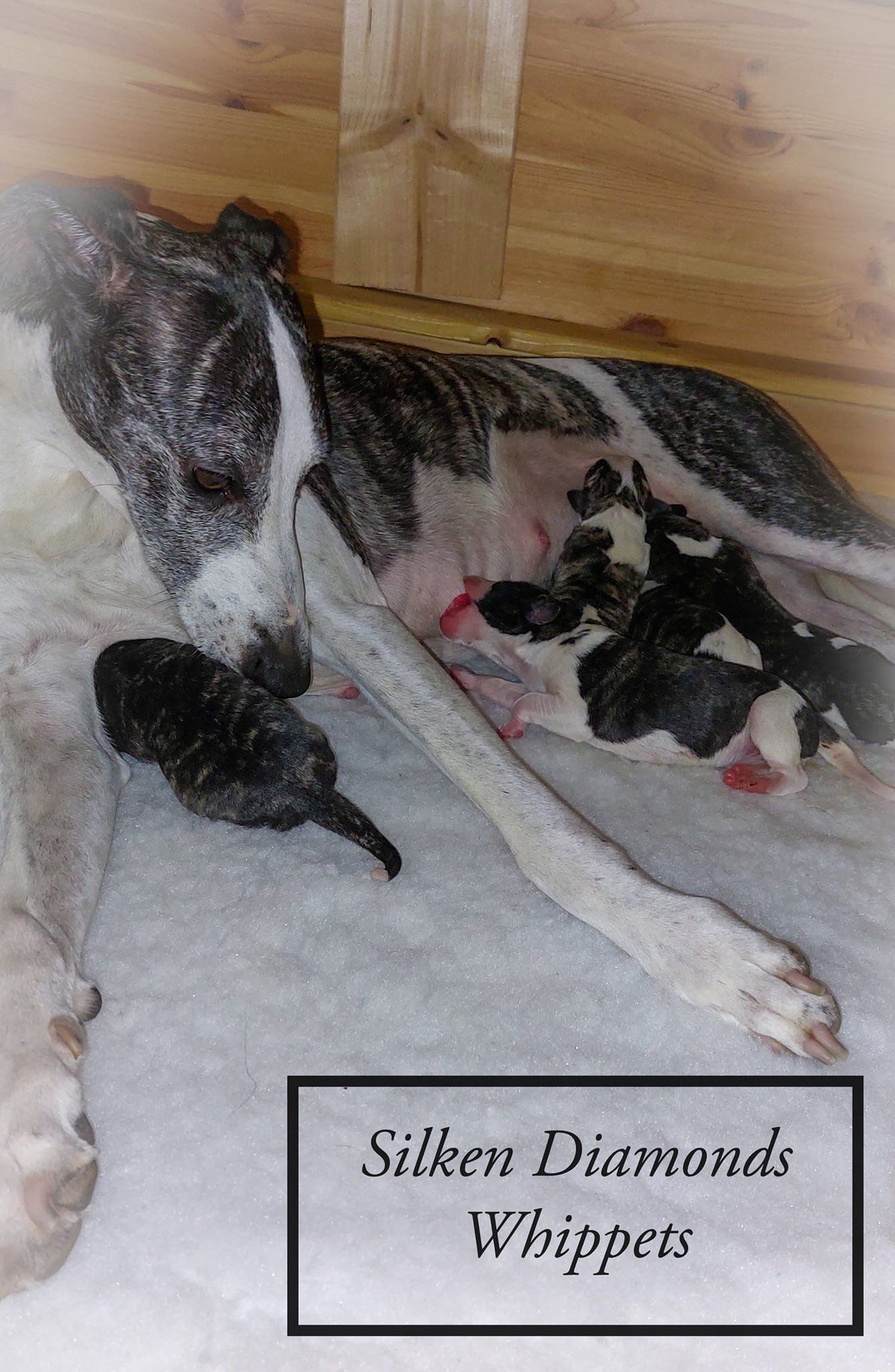 Pünktlich zu Heilig Abend hat unsere Phoebe in einer Traumgeburt souverän und instinktsicher 5 kleinen Whippet-Christkindchen ( 3 Buben und 2 Mädchen ) das Leben geschenkt. Mama und Welpen sind putzmunter und wohlauf. Eine Einzelvorstellung der 5 bildschönen Welpen erfolgt in Kürze....