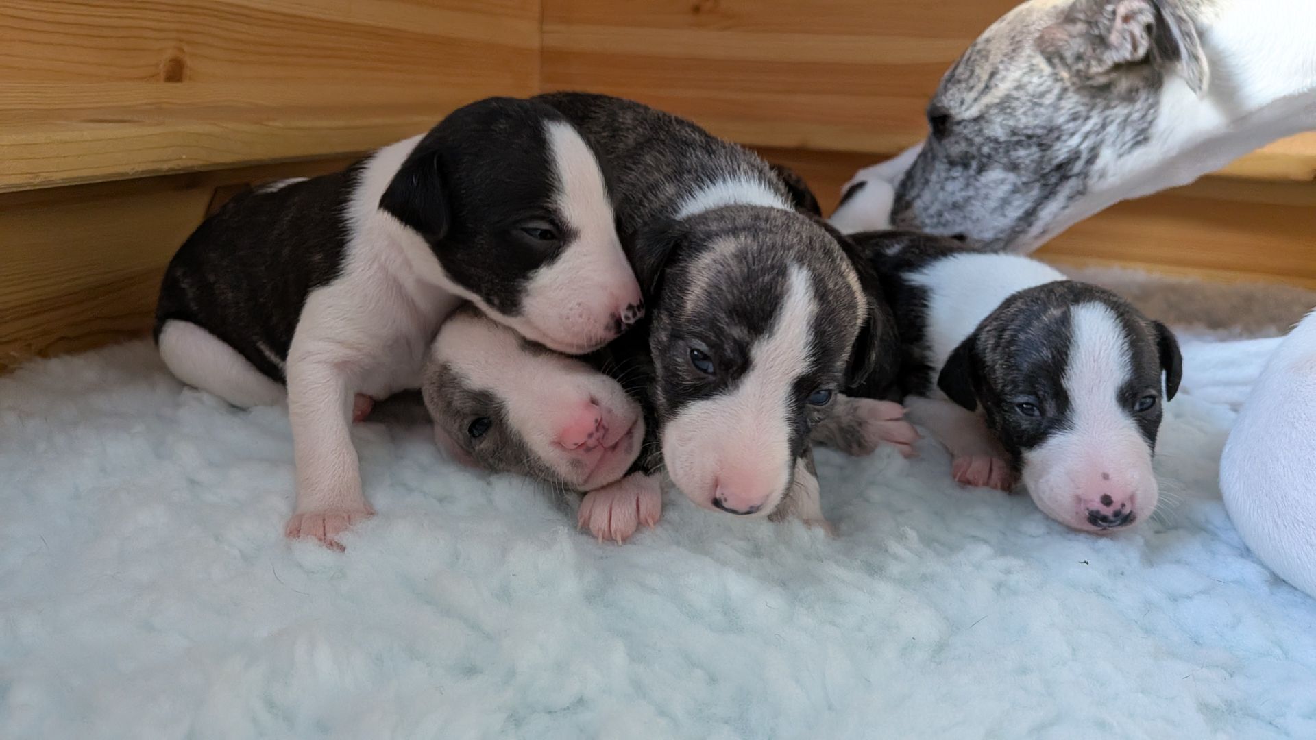 Die kleinen Diamanten sind nun schon 8 Wochen alt und langsam sieht man das es kleine Whippchen sind. Bildhübsch und bezaubernd, total taff sind sie geworden.