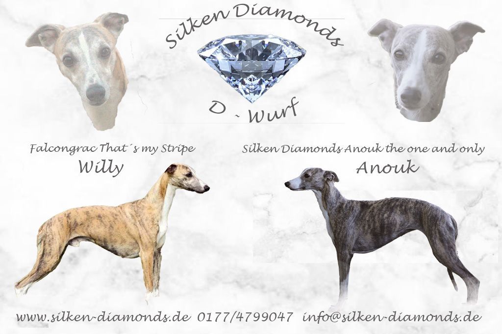 Es gibt tolle Neuigkeiten bei den Silken Diamonds. Gestern haben wir uns mit unserer Silken Diamonds Anouk the one and only "Anouk" auf den Weg nach Nordrhein-Westfalen zu Markus Langer und seinem wundervollen und charmanten Rüden Falconcrag That´s My Stribe gemacht. Er ist bereits mehrfacher Champion und hat bereits sehr erfolgreiche Nachzuchten. Mit dieser tollen Verbindung erwarten wir uns charakterstarke und Typvolle Whippetwelpen. Wenn alles gut läuft , dürfen wir anfang/mitte März mit den kleinen Silken Diamonds rechnen. Nun beginnt wieder eine sehr spannende Zeit auf die wir uns sehr freuen.